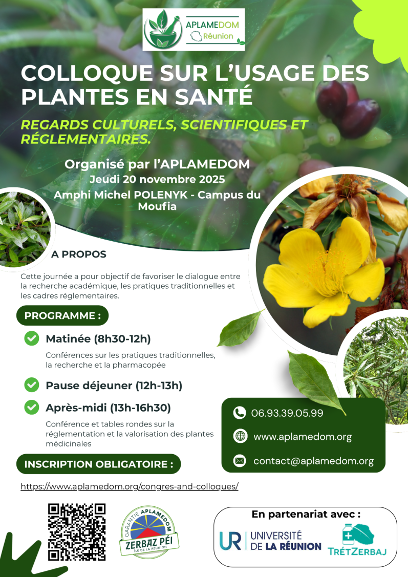 L’APLAMEDOM Réunion, en partenariat avec TRETZERBAJ, a organisé le jeudi 20 novembre 2025 le colloque « Usage des plantes en santé : regards scientifique, culturel et réglementaire ».